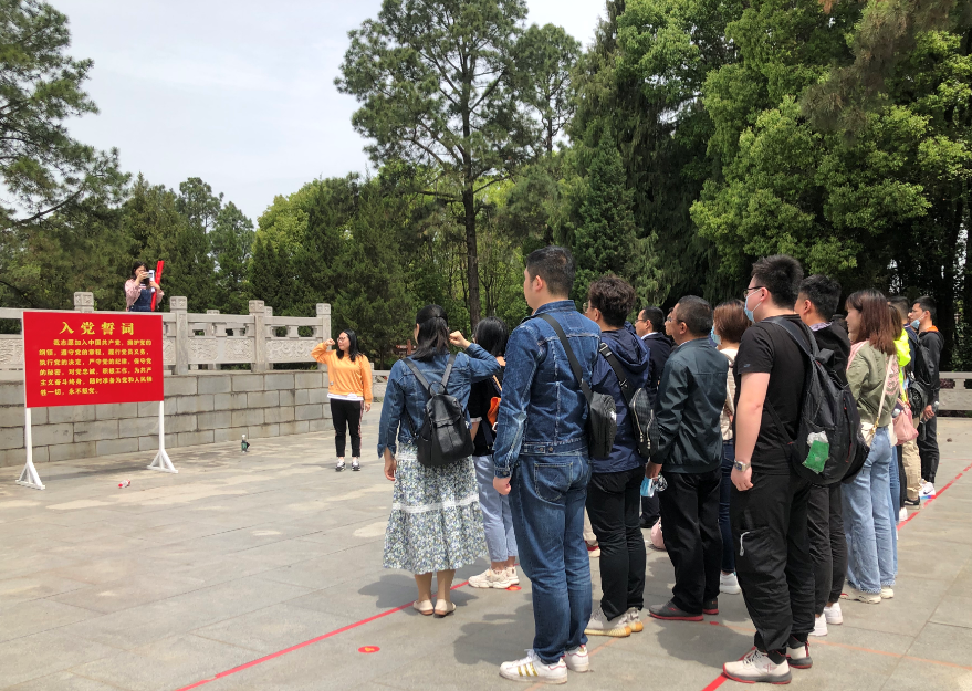 在麻城烈士陵園紀念碑下,全體黨員在協會支部書記李燕同志的帶領下,重溫入黨誓詞。麻城是一塊紅色的土地。自中國共産黨成立之日起,中共"一大"代表董必武、陳潭秋以武漢中學為基地,傳播馬克思主義。國内革命戰争時期,麻城農民運動轟轟烈烈,聞名全省。後又勝利地舉行了"黃麻起義"。以黃麻起義為起點,星火燎原大别山,紅旗插遍鄂豫皖,創建了僅次于中央蘇區的全國第二大革命根據地。麻城烈士陵園也是為紀念“黃麻起義”和緬懷鄂豫皖革命先烈的英雄事迹而修建的,是湖北省愛國主義、國防教育示範基地。