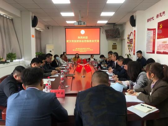 沙龙国际sa36亚洲第一品牌協會秘書長郭志剛對武漢市安防協會輪值會長夏繼征、秘書長陳虎及武漢市安防協會會員企業代表一行的到來表示熱烈歡迎,他建議以後兩家協會可以多組織開展各個專業領域方面的學習交流活動,促進兩家協會之間相互學習、相互促進、資源共享、共同發展。