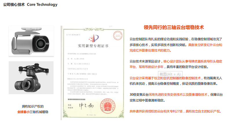 ● 公司掌握一整套核心技術,重點研制具備全向避障、完全智能化、自動飛行、自主執行任務的重載無人直升機,目前主要有起飛重量300公斤和30公斤級兩個系列的産品。無人直升機系統采用完全自主研制的飛控技術,配備自研的數據鍊,能實現300公裡的通訊、控制、圖傳和多機組網,包括多光譜光電挂載、自研并生産的高效滅火導彈、滅火噴射裝置等一系列高科技任務載荷、以及導彈和槍械,能執行城市高層消防救援、危化品火災救援、森林防撲火救援、電力巡檢、環保監察、公安搜查、空中應急救援、海事管理、邊防安檢、工業檢測以及安防監控等一系列複雜任務。
