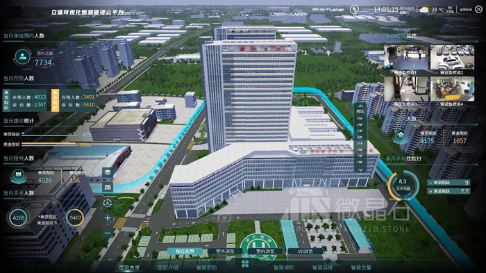 微晶石科技自主研發的智慧醫院後勤管理系統,包括數字孿生IOC大屏可視化運營系統、數字孿生醫院後勤管理系統、數字孿生醫院應急響應系統。