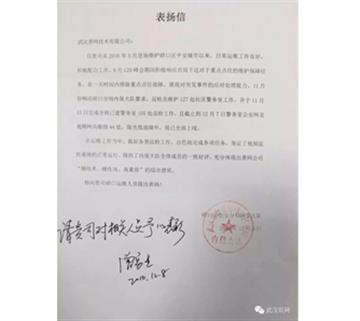 武漢景網喜獲業主單位硚口區公安分局表揚信【詳細】