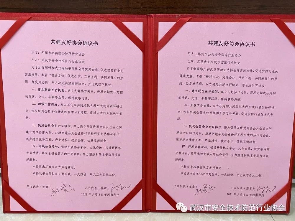 武漢安防協會參加鄭州市安防協會理事會并與其簽訂友好協會