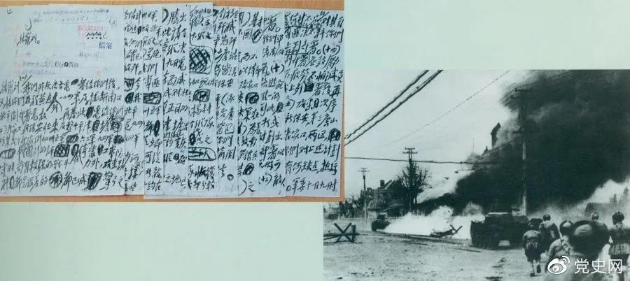 毛澤東起草的關于平津戰役作戰方針電報的手稿。1948年11月29日至1949年1月31日,東北野戰軍和華北軍區部隊共同發起平津戰役,殲滅和改編國民黨軍傅作義集團52萬餘人。