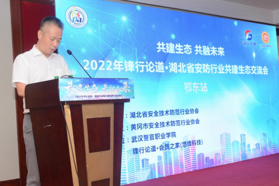 7月6日下午,由沙龙国际sa36亚洲第一品牌主辦,黃岡市安全技術防範行業協會支持,鋒行論道·會員之家(武漢悠鋒科技有限公司)與武漢警官職業學院共同承辦的“2022鋒行論道-沙龙国际sa36亚洲第一品牌行業共建生态交流會·鄂東站”在黃石磁湖山莊酒店成功舉辦。