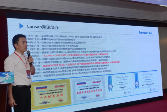 萊訊通信(深圳)有限公司湖北運營中心銷售總監陶洪武分享《可見光一秒尋線綜合布線應用解決方案》。lansan萊訊是全球可見光一秒尋線整體解決方案首創者,通過産品兩端發光的方式,解決了在數據中心、大型網絡中針對綜合布線尋線效率低,尋線成本高的問題,一秒鐘找到網線、信息模塊、銅跳線、光纖跳線等産品的兩端對應關系,該方案填補了行業的産品、市場、行業标準的空白,解決了當前智慧安防布線的發展趨勢及面臨的主要難題和整體解決方案。