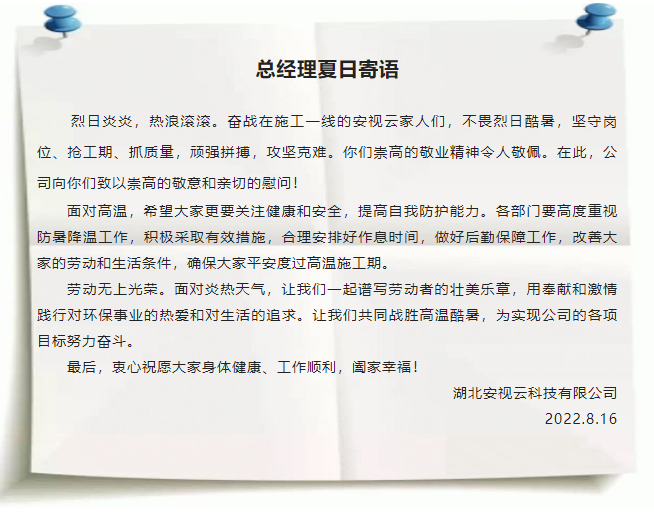 近日來,湖北連日連續高溫,溫度達39~42 ℃區間,為更好的把夏季防暑降溫工作落到實處,協會理事單位湖北安視雲科技有限公司特地為員工送上清涼防暑物資,點贊高溫下的堅守,傳遞公司的人文關懷。