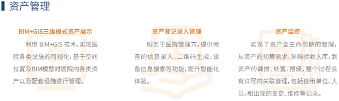 數字孿生醫院後勤管理系統提供智能化子系統集成、設施設備運維、工單管理系統、資産管理系統、空間管理系統、後勤物資管理等功能。